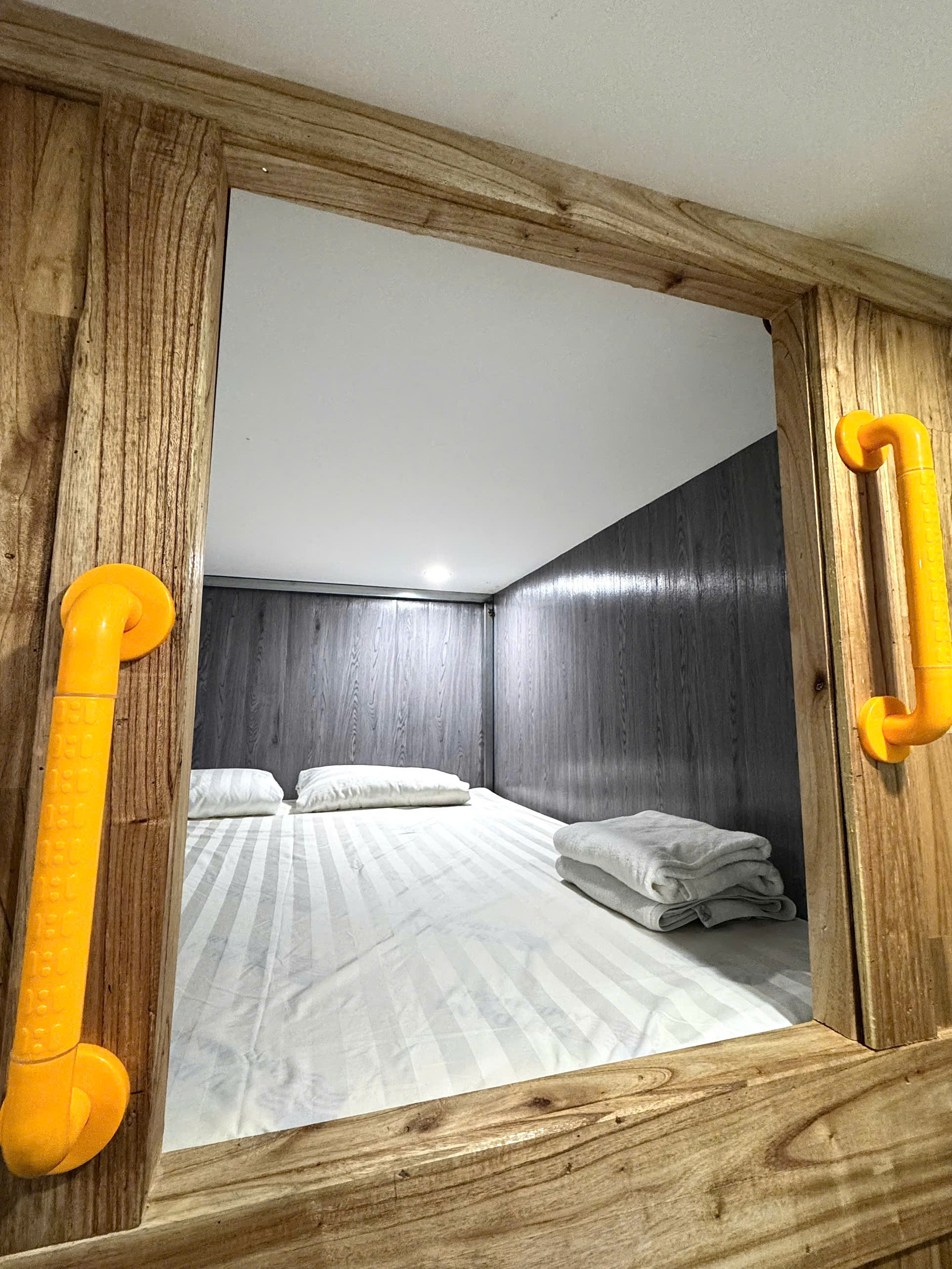 Phòng không có khu vệ sinh riêng như khách sạn truyền thống mà khách cần sử dụng không gian vệ sinh chung.
